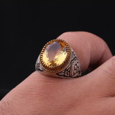 انگشتر سیترین رکاب تاج برنجی طراحی زیبای اصل ( انگشتر مردانه )