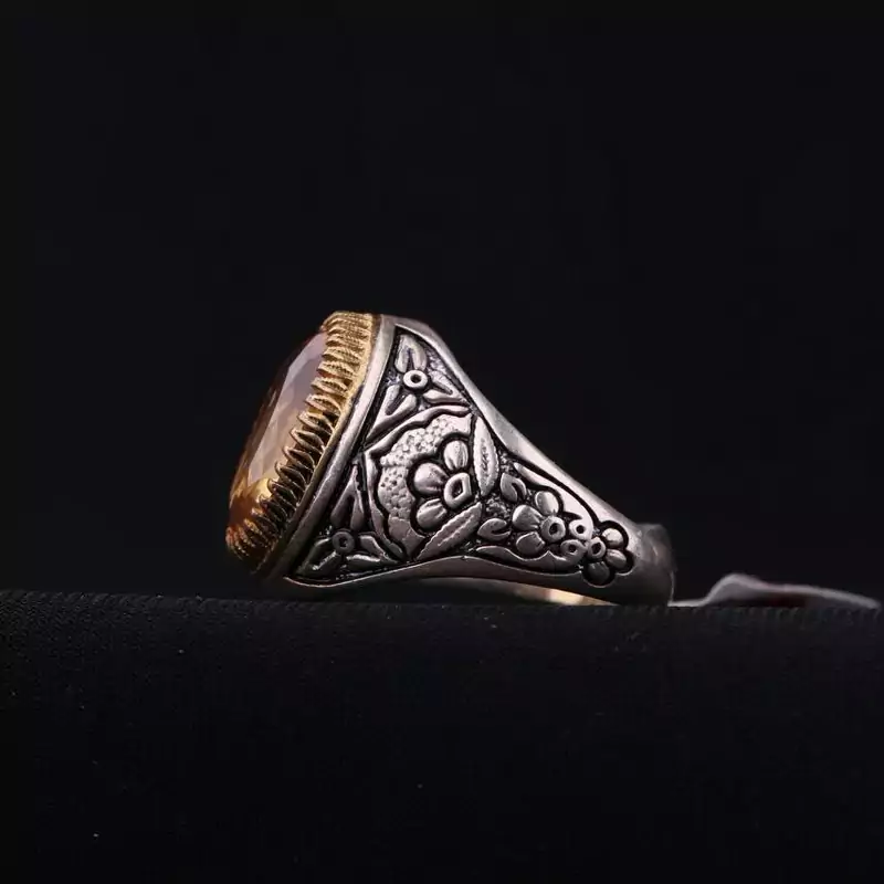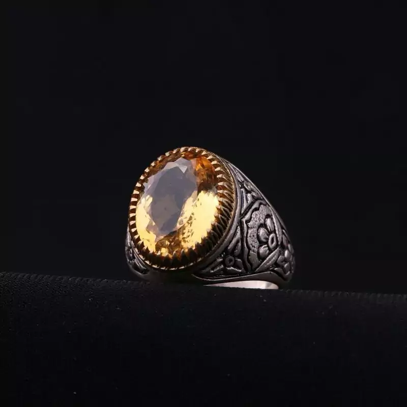 انگشتر سیترین رکاب تاج برنجی طراحی زیبای اصل ( انگشتر مردانه )