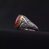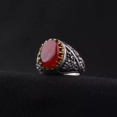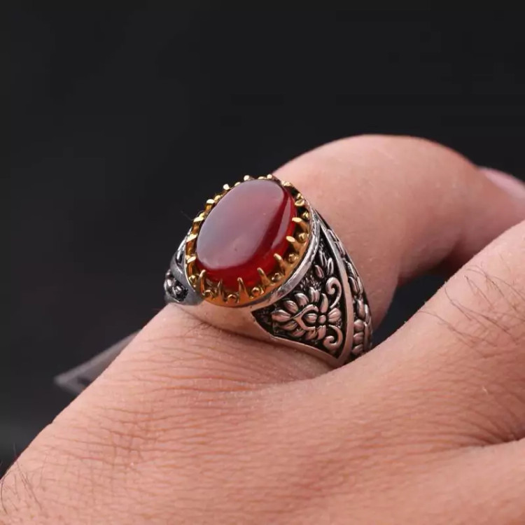 انگشتر عقیق سرخ یمنی رکاب تاج برنجی خوشدست اصل ( انگشتر مردانه )