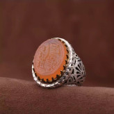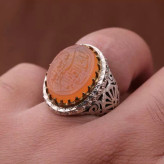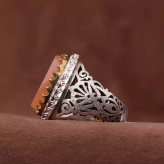 انگشتر عقیق یمنی سه نقش رکاب دستساز و تاج برنجی اصل ( انگشتر مردانه )