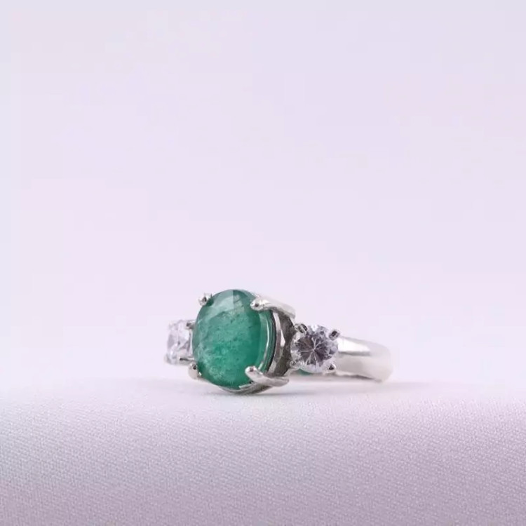 انگشتر زنانه نقره زمرد برزیلی اصل روکش رادیوم