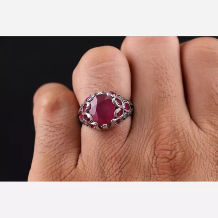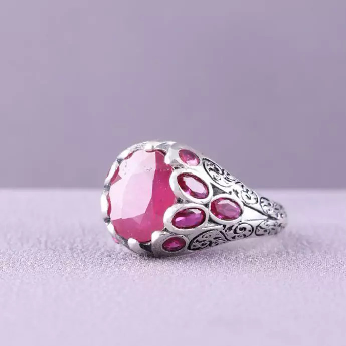 رکاب این انگشتر زیبا نقره 925 عیار می باشد. نگین آن یاقوت سرخ است.