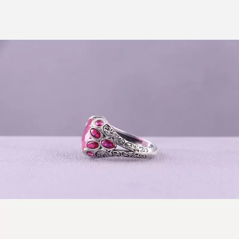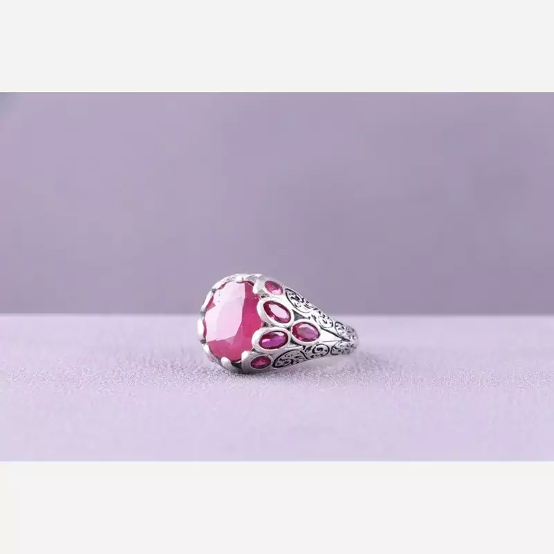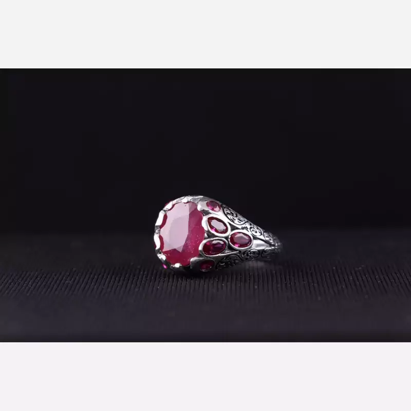 رکاب این انگشتر زیبا نقره 925 عیار می باشد. نگین آن یاقوت سرخ است.