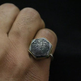 انگشتر حدید شش ضلعی نقش آیت الکرسی رکاب کنار برنجی اصل ( انگشتر مردانه )