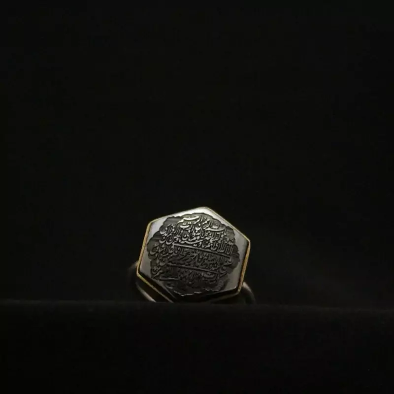 انگشتر حدید شش ضلعی نقش آیت الکرسی رکاب کنار برنجی اصل ( انگشتر مردانه )
