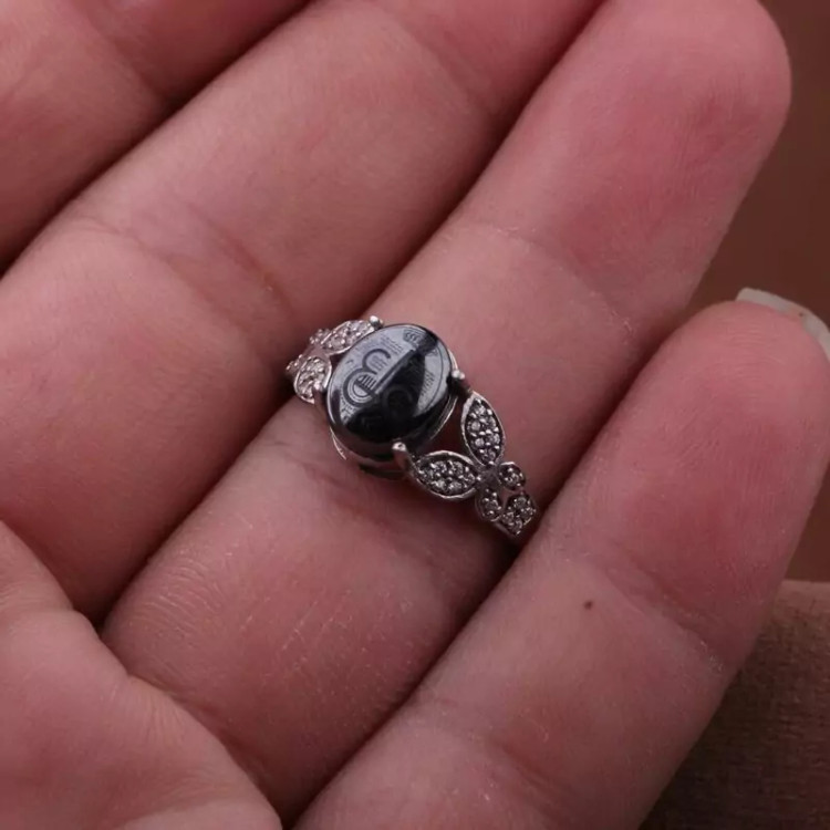 انگشتر حدید نقش حرز عین علی رکاب روکش رادیوم اصل ( انگشتر زنانه )