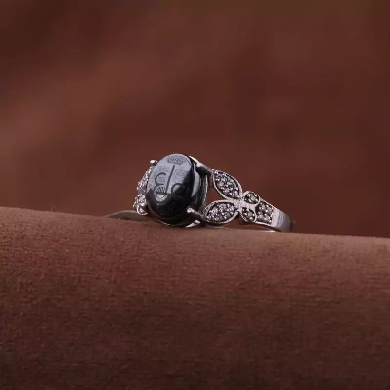انگشتر حدید نقش حرز عین علی رکاب روکش رادیوم اصل ( انگشتر زنانه )