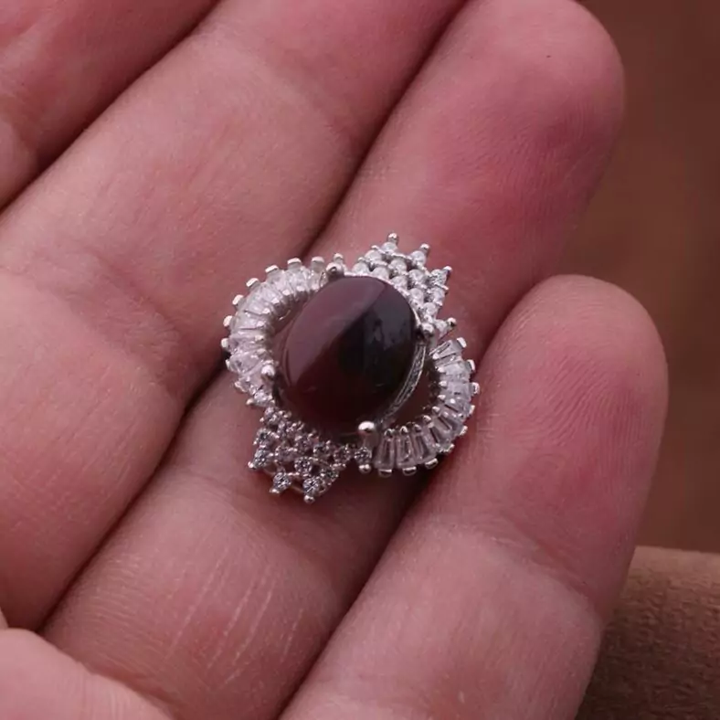 انگشتر عقیق یمنی طراحی جدید معدنی زنانه اصل ( انگشتر زنانه )