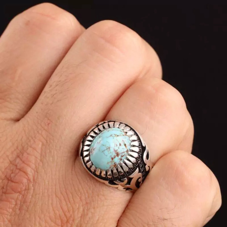 انگشتر نقره مردانه اسپرت فیروزه اصل نیشابوری