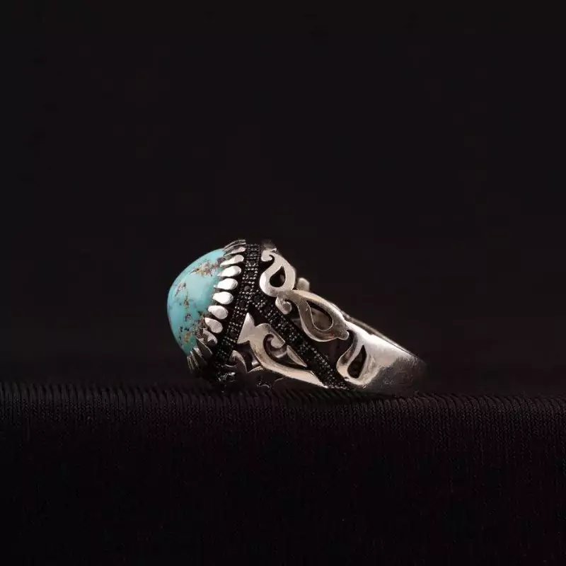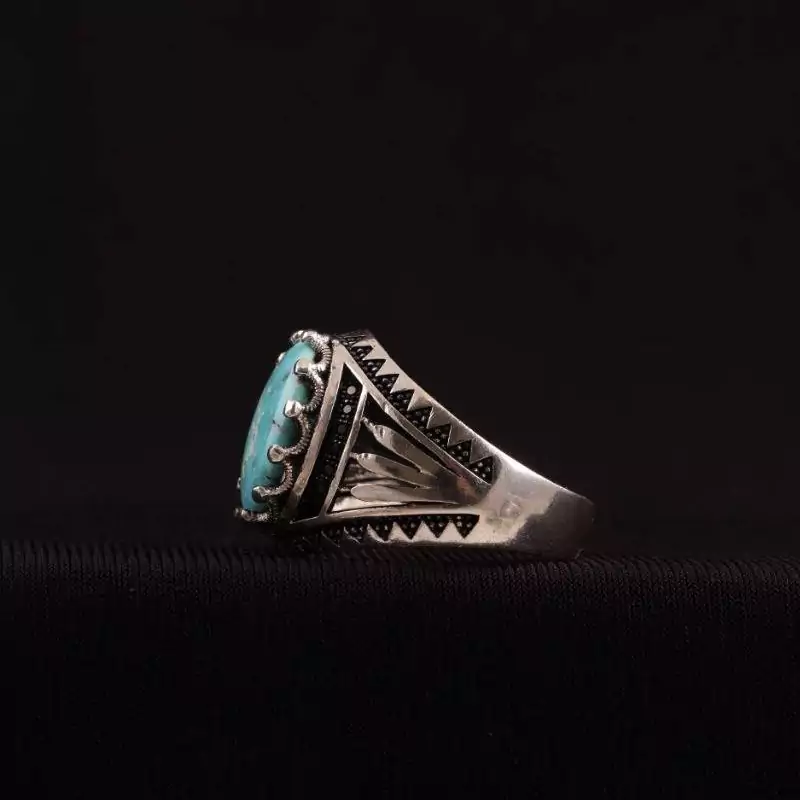 انگشتر نقره مردانه اسپرت فیروزه اصل نیشابوری