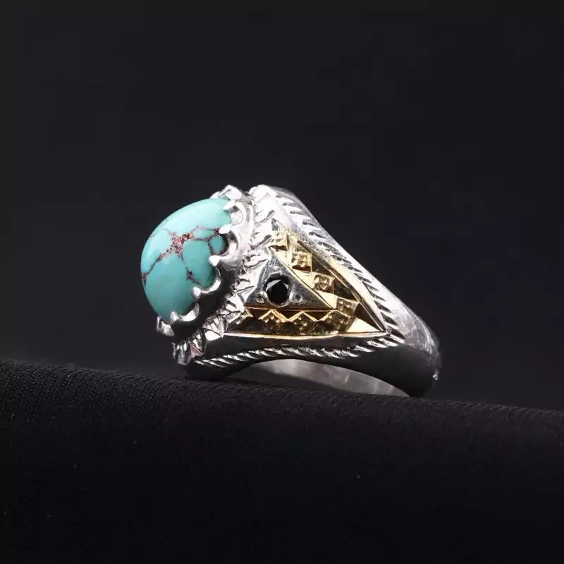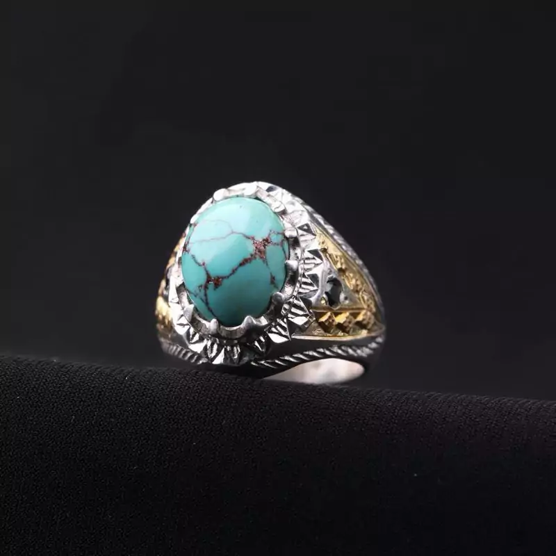 انگشتر فیروزه نیشابور دستساز رکاب کنار برنجی اصل ( انگشتر مردانه )