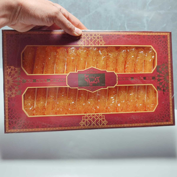 - نبات زعفرانی: این نوع نبات با اضافه کردن زعفران به شکر تهیه میشود و به دلیل رنگ زعفرانی خود بسیار محبوب است. علاوه بر طعم و رنگ جذاب، نبات زعفرانی خواص بیشتری نیز دارد و برای تقویت حافظه و آرامش بسیار مفید است.