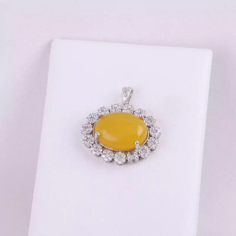 مدال زیبای نقره با نگین عقیق زرد اصل مزین به حرز شزف الشمس که در روز 19 فروردین به رعایت تمامی آداب حکاکی می شود.