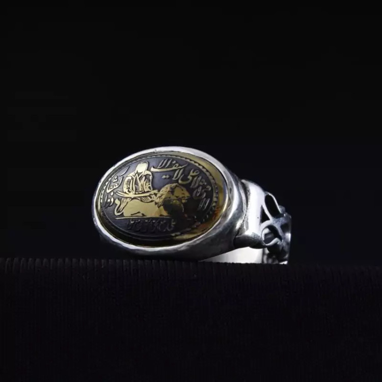 انگشتر نقره مردانه حدید نقش لافتی الا علی اصل ( انگشتر حدید )