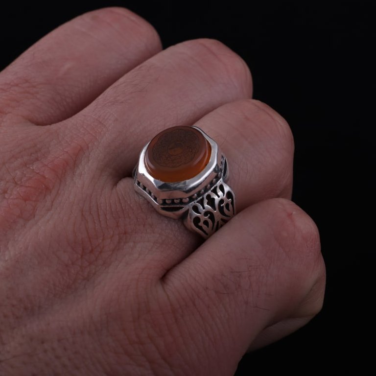 انگشتر نقره مردانه عقیق یمنی منقش اصل ( انگشتر یمنی )