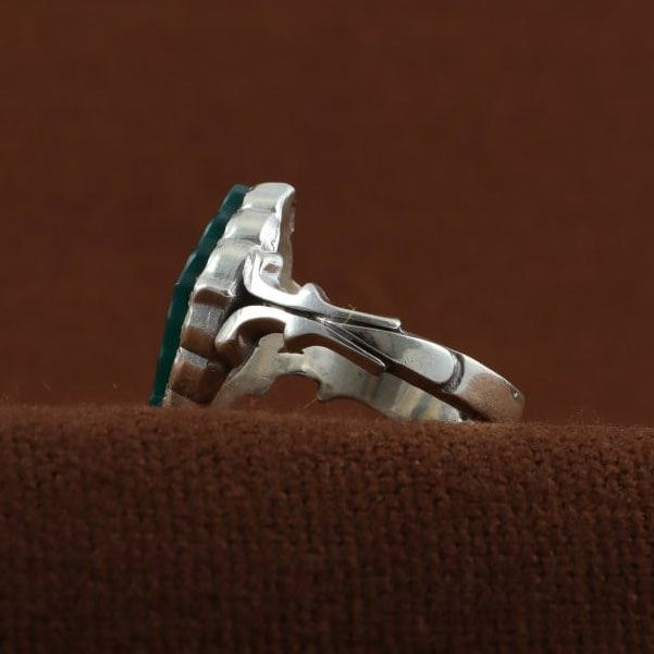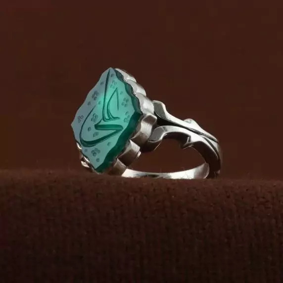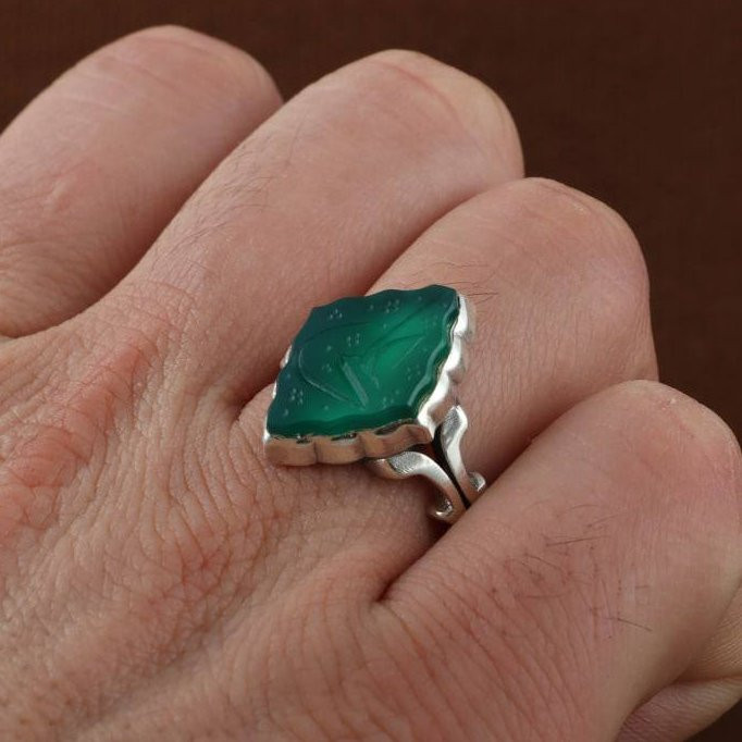 انگشتر مردانه عقیق سبز نقش علی معلی اصل ( انگشتر عقیق )