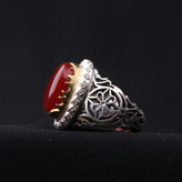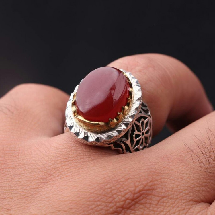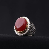 انگشتر عقیق یمنی معدنی دستساز رکاب تاج برنجی اصل ( انگشتر مردانه )