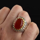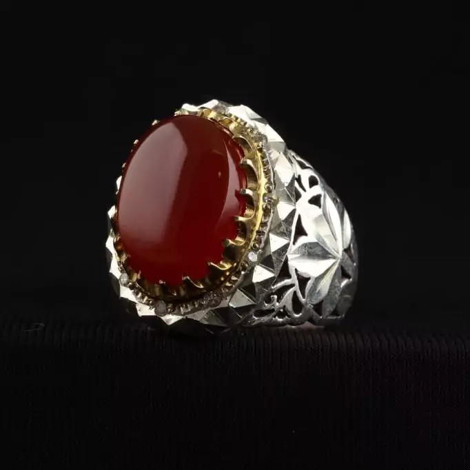 انگشتر نقره مردانه عقیق یمنی دستساز رکاب تاج برنجی اصل ( انگشتر نقره دستساز )