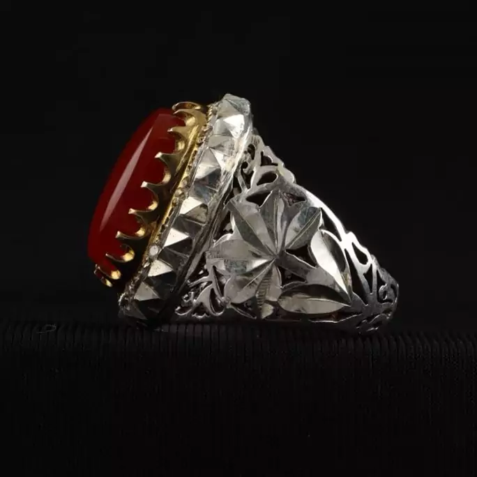 انگشتر نقره مردانه عقیق یمنی دستساز رکاب تاج برنجی اصل ( انگشتر نقره دستساز )
