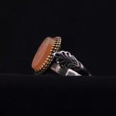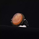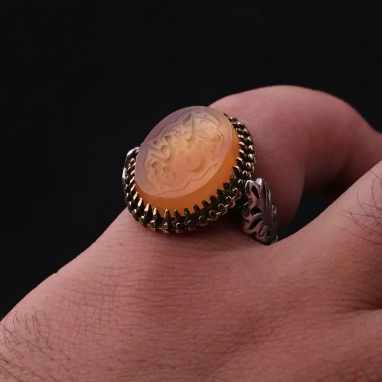 انگشتر عقیق یمنی رکاب تاج برنجی نقش یاحسین مظلوم اصل ( انگشتر مردانه )