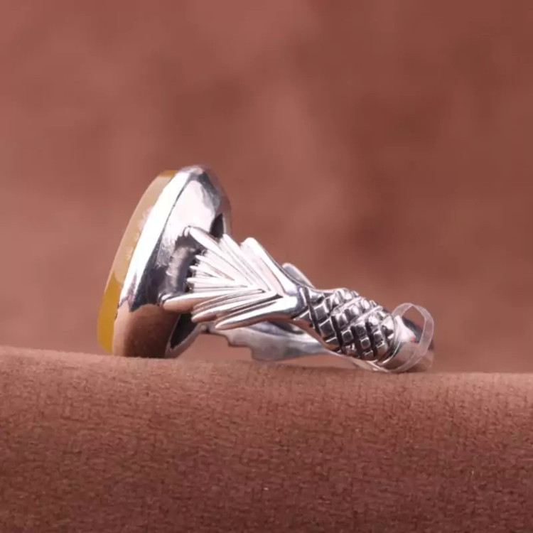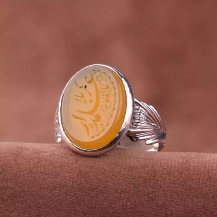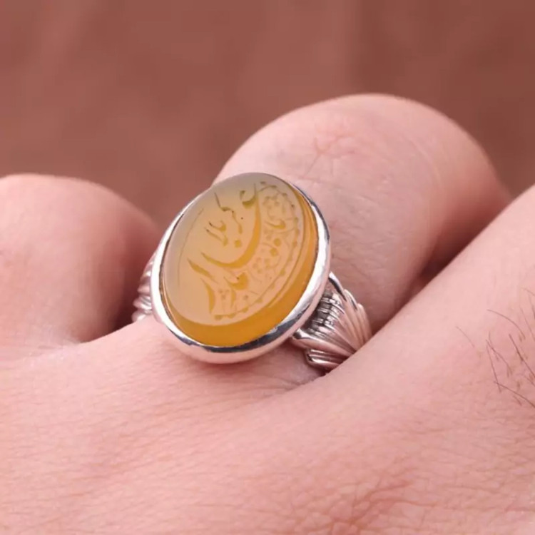 انگشتر عقیق زرد نقش یاعلمدار کربلا مردانه اصل ( انگشتر مردانه )