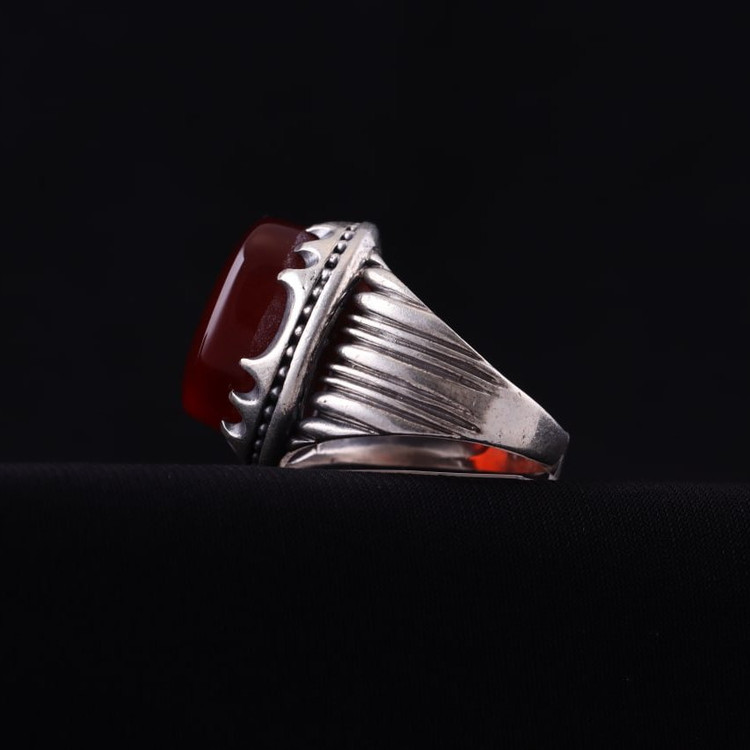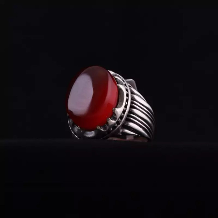 انگشتر نقره مردانه عقیق سرخ معدنی نگین درشت اصل ( انگشتر عقیق )