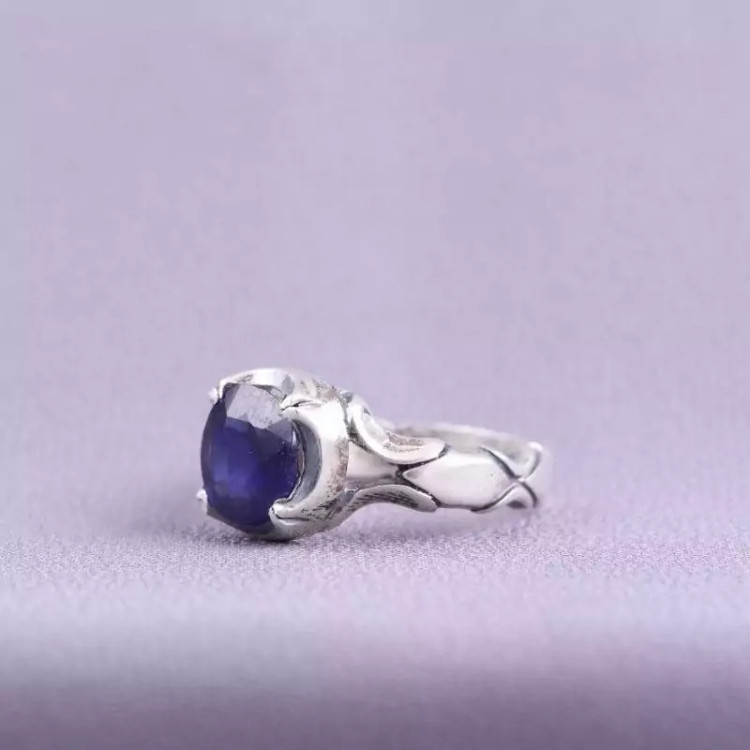 نگین انگشتر یاقوت کبود طبیعی اصل و رکاب آن نقره ۹۲۵ عیار می باشد.