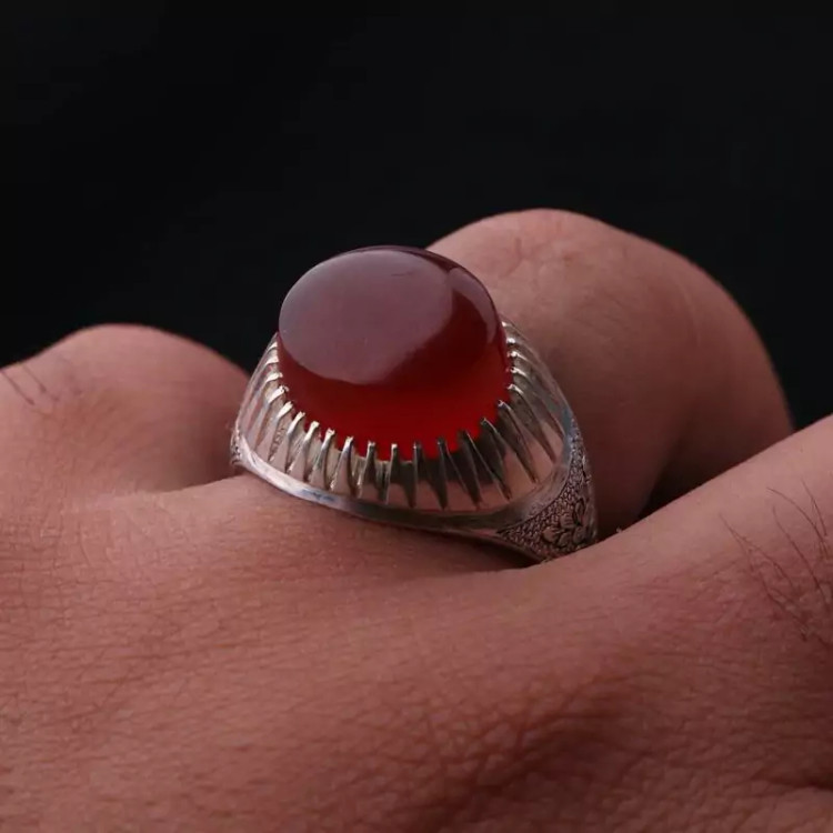 انگشتر عقیق یمنی دستساز خوشرنگ اصل ( انگشتر مردانه )