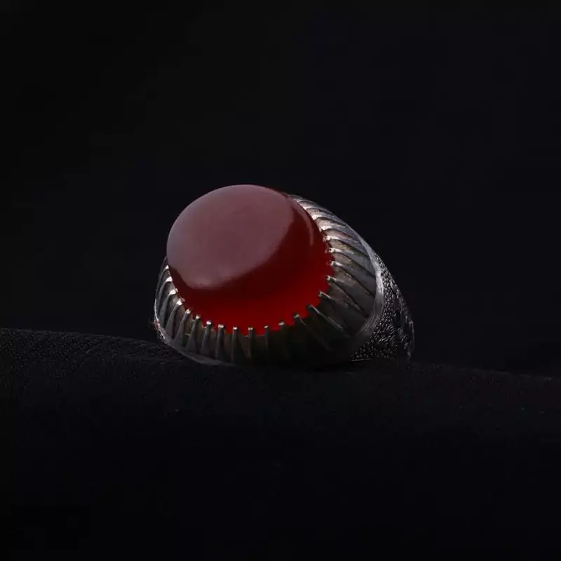 انگشتر عقیق یمنی دستساز خوشرنگ اصل ( انگشتر مردانه )
