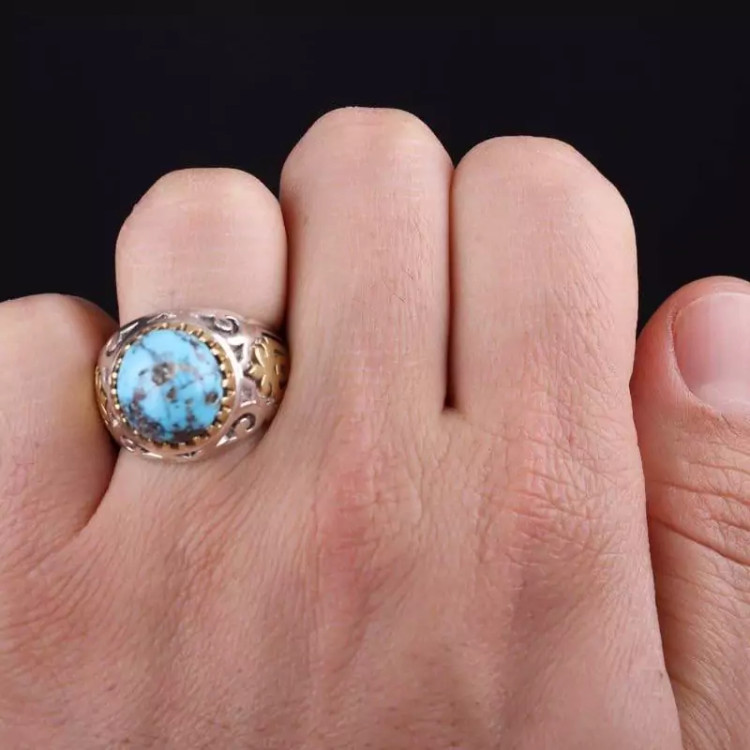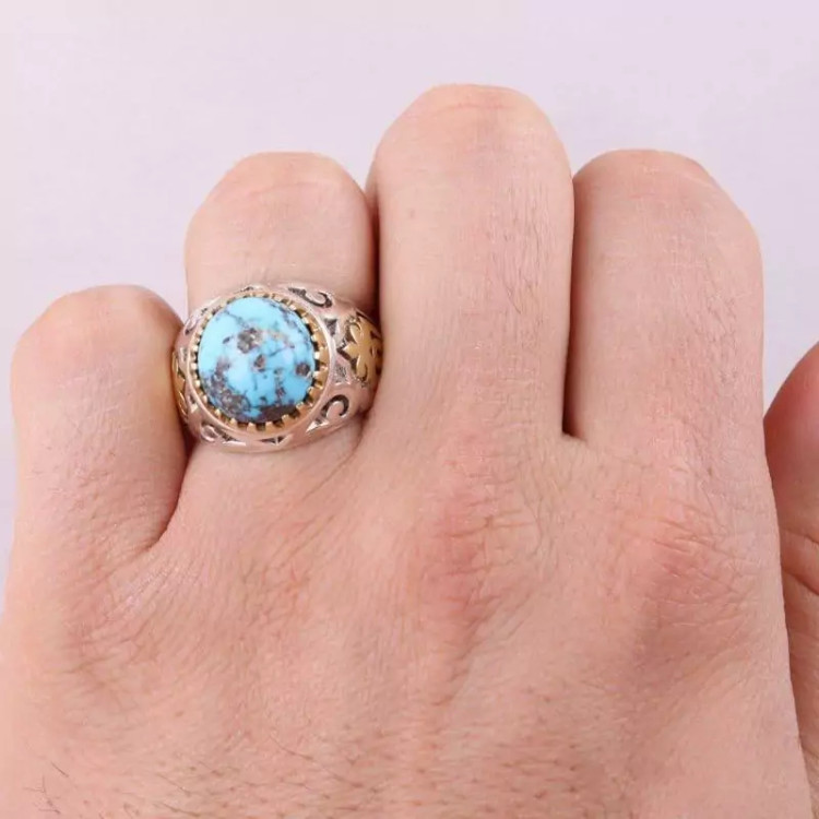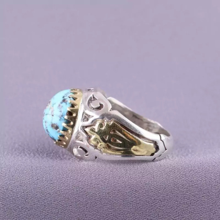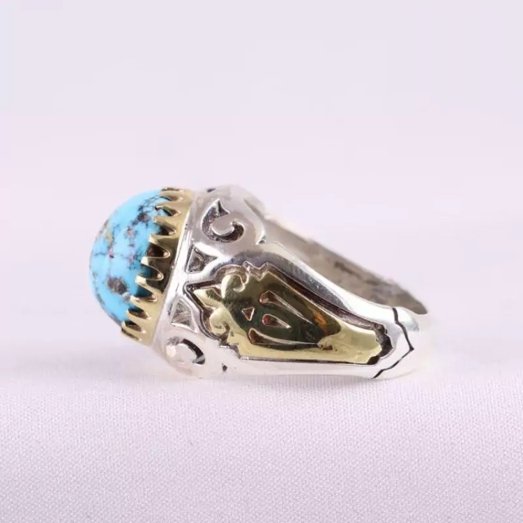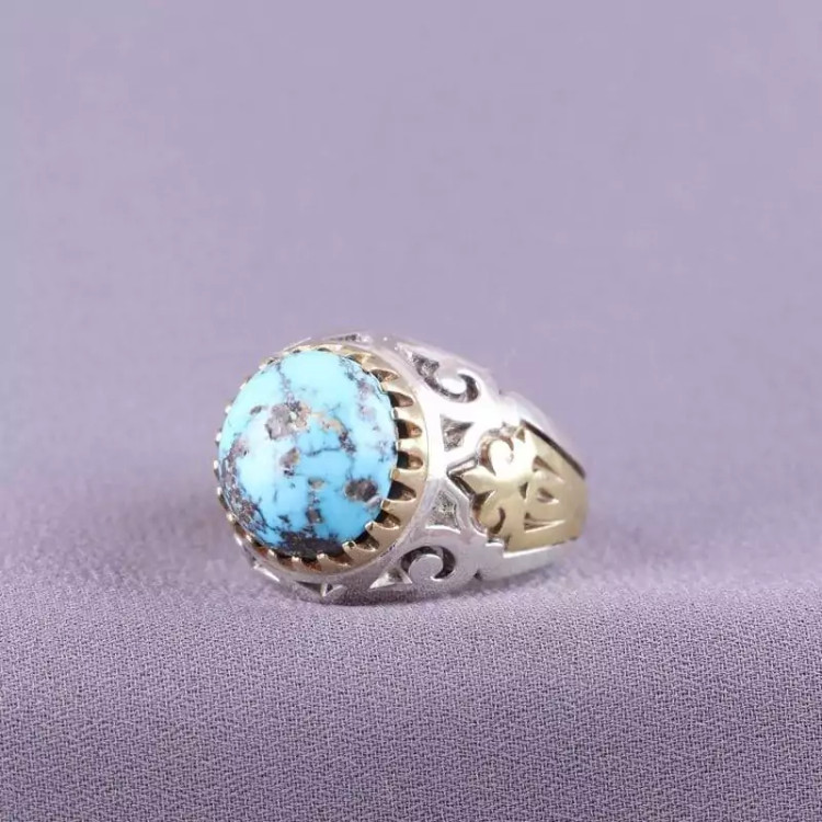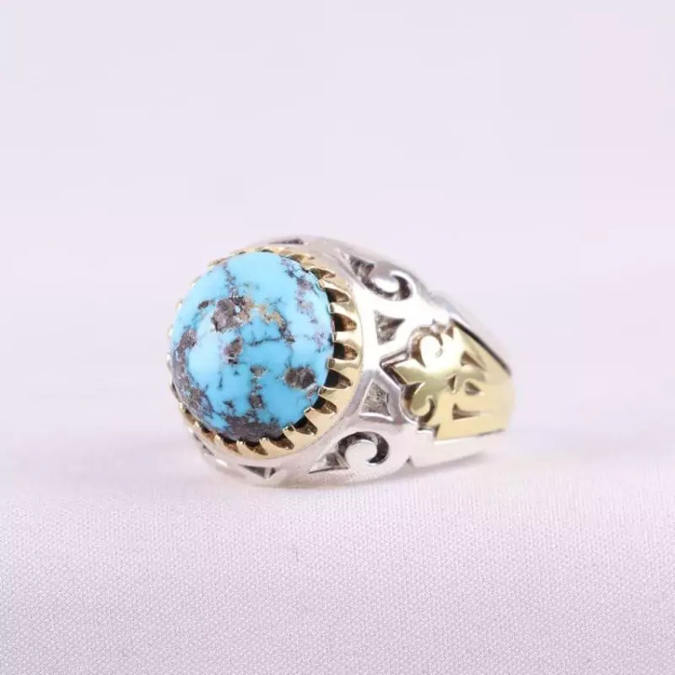 نگین فیروزه ی نیشابوری اصل دامله و خوشرنگ است.