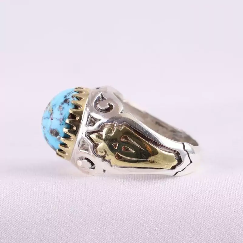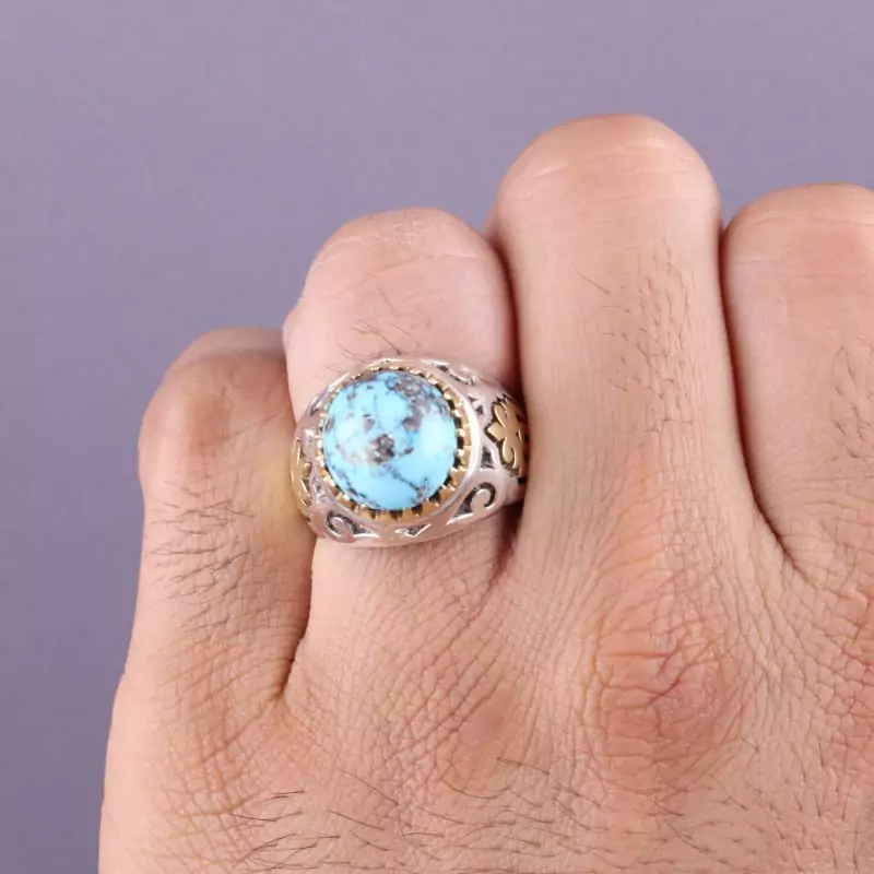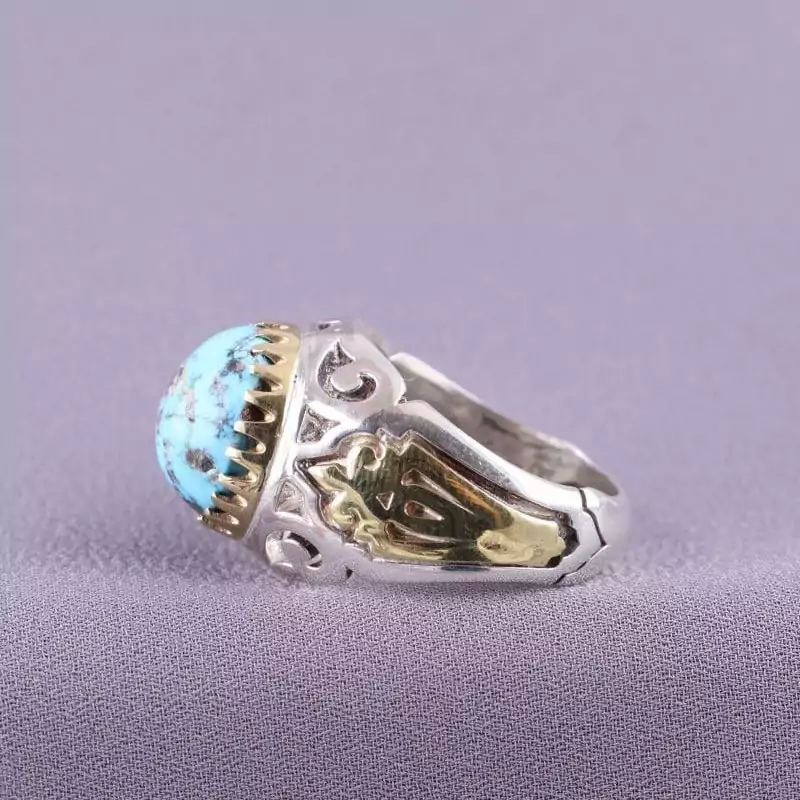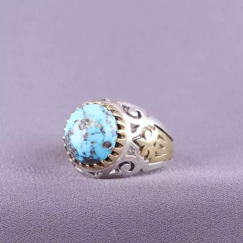 انگشتر فیروزه نیشابوری اصل دامله نقره 925 عیار