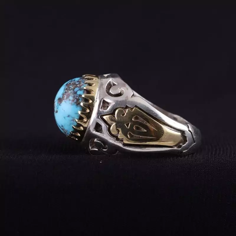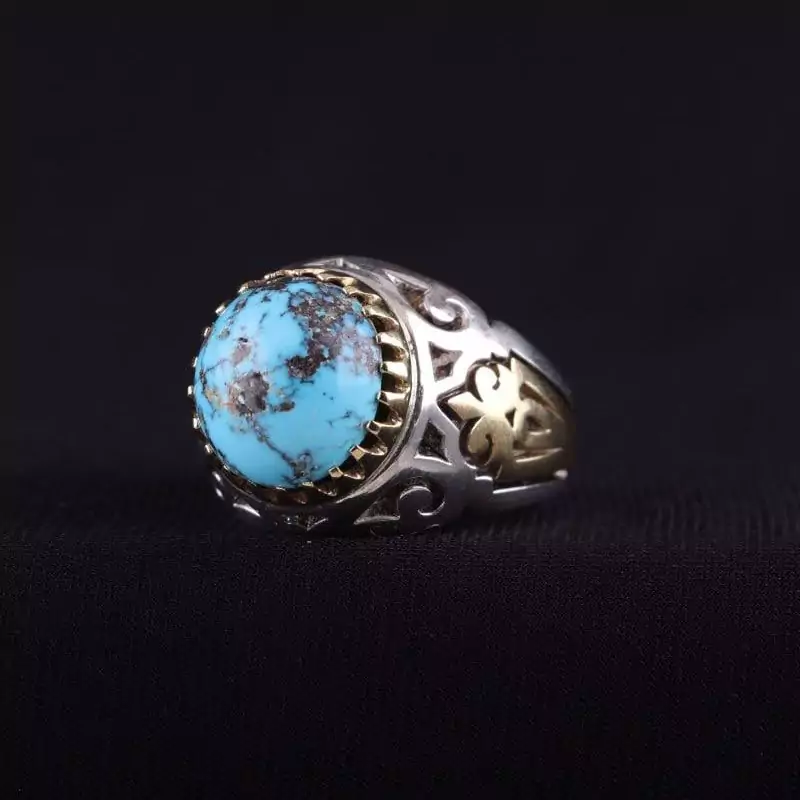 نگین فیروزه ی نیشابوری اصل دامله و خوشرنگ است.