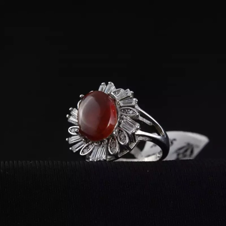 انگشتر نقره زنانه عقیق یمنی رکاب روکش رادیومی اصل ( انگشتر عقیق )