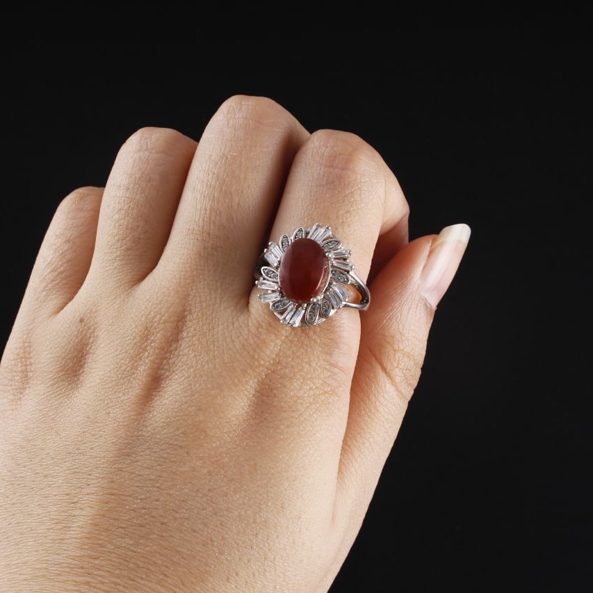 انگشتر نقره زنانه عقیق یمنی رکاب روکش رادیومی اصل ( انگشتر عقیق )