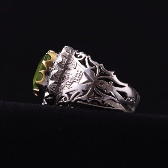 انگشتر مردانه زبرجد دستساز رکاب رادیومی تاج برنجی اصل ( انگشتر دستساز )