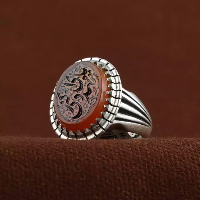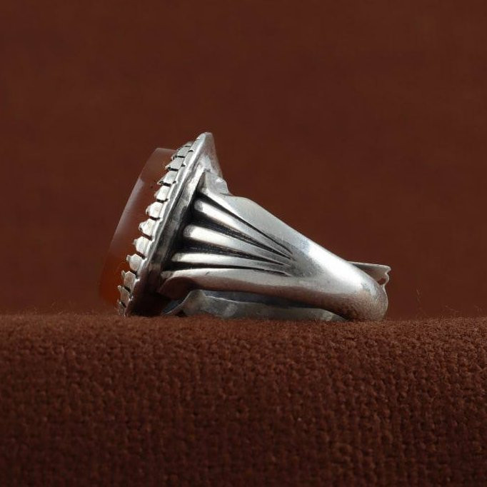 انگشتر مردانه نقره عقیق یمنی نقش یامهدی ادرکنی اصل ( انگشتر عقیق )
