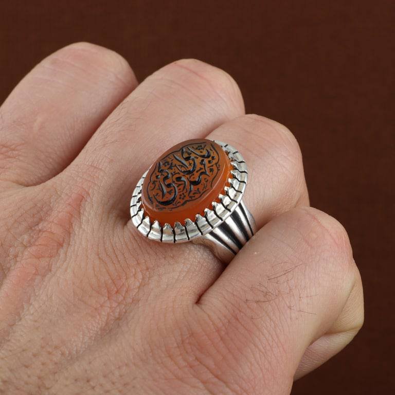 انگشتر مردانه نقره عقیق یمنی نقش یامهدی ادرکنی اصل ( انگشتر عقیق )