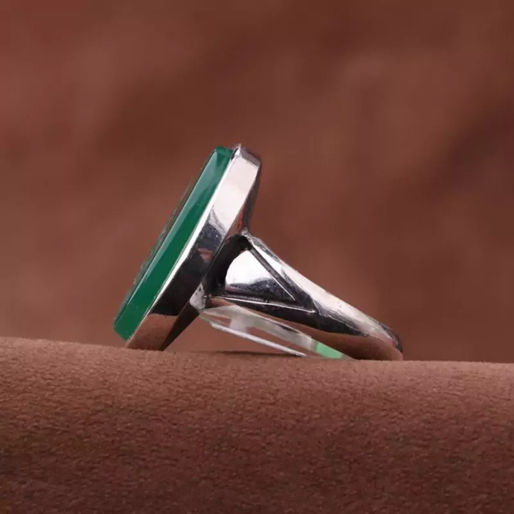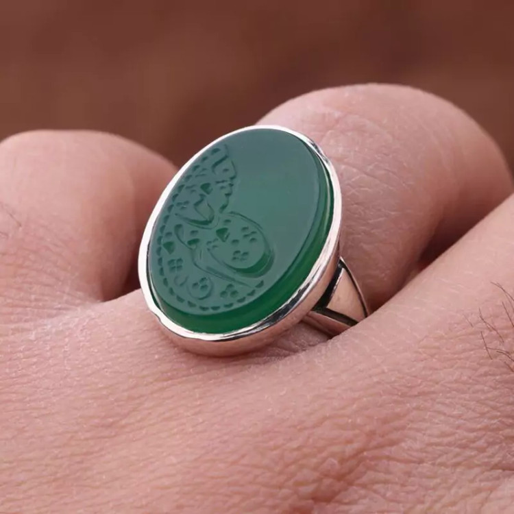 انگشتر عقیق سبز نقش حسن جانم مردانه اصل ( انگشتر مردانه منقش )