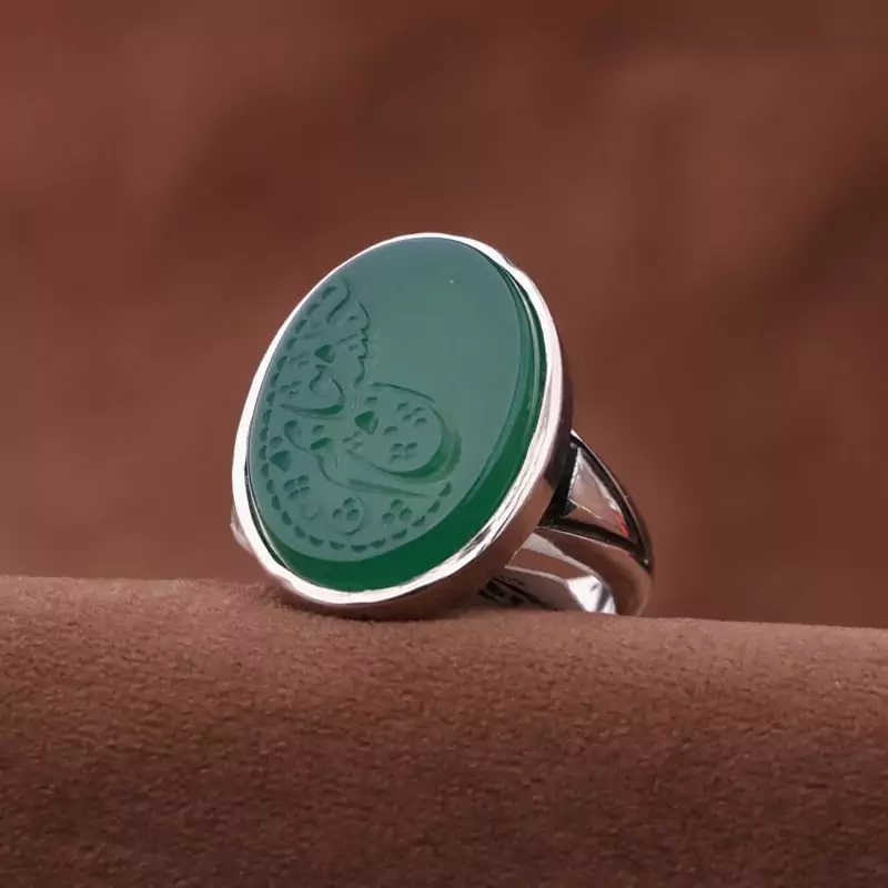 انگشتر عقیق سبز نقش حسن جانم مردانه اصل ( انگشتر مردانه منقش )