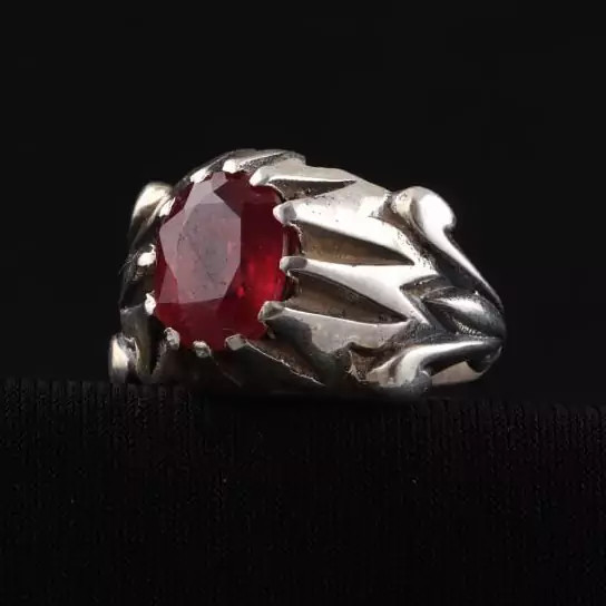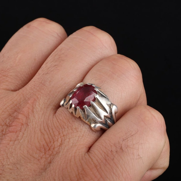 انگشتر یاقوت سرخ آفریقایی خوش تراش اصل ( انگشتر نقره مردانه )