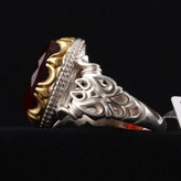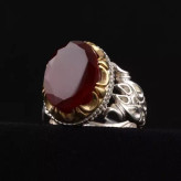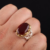 انگشتر عقیق سرخ خراسانی معدنی تراش الماسی رکاب تاج برنجی اصل ( انگشتر نقره مردانه )