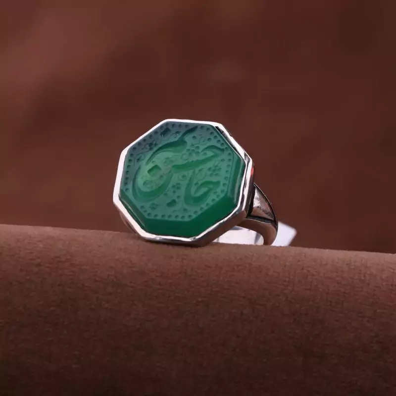 انگشتر عقیق سبز نقش حسن جانم اصل ( انگشتر مردانه )