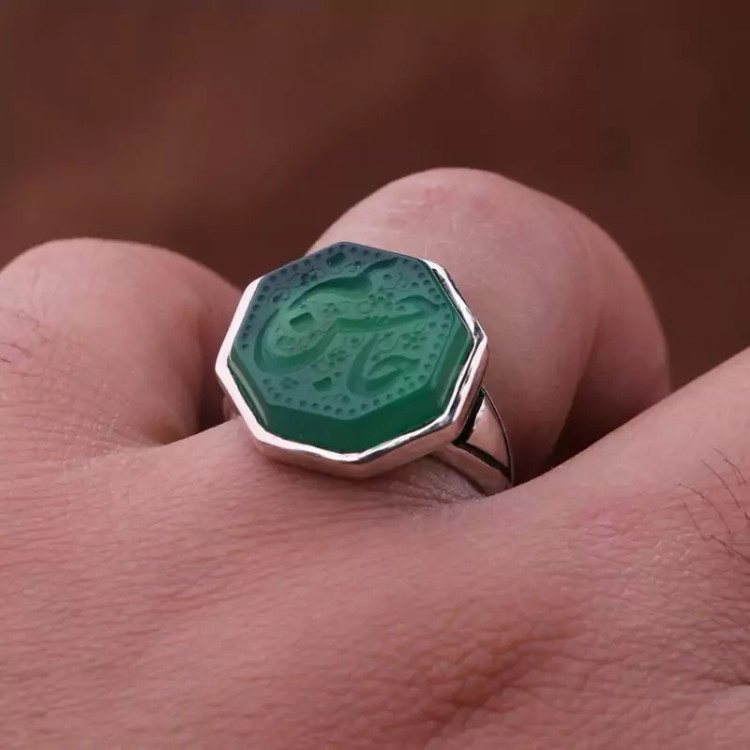 انگشتر عقیق سبز نقش حسن جانم اصل ( انگشتر مردانه )