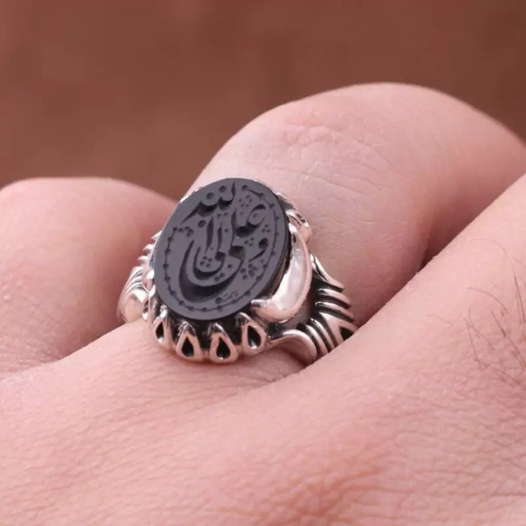 انگشتر عقیق مشکی علی ولی الله مردانه اصل ( انگشتر مردانه )