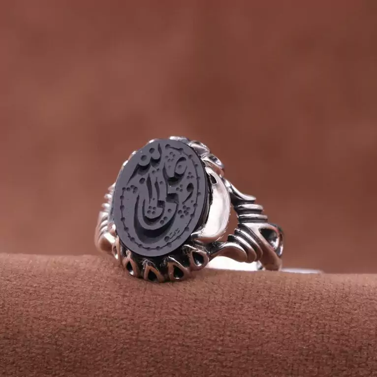 انگشتر عقیق مشکی علی ولی الله مردانه اصل ( انگشتر مردانه )