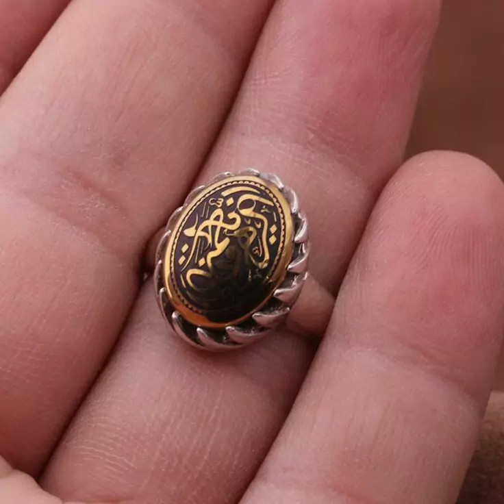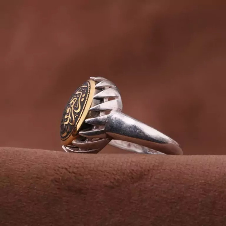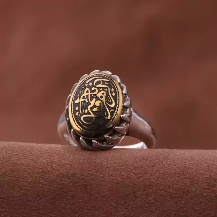 انگشتر حدید منقش روکش برنجی منقش زنانه اصل ( انگشتر زنانه )