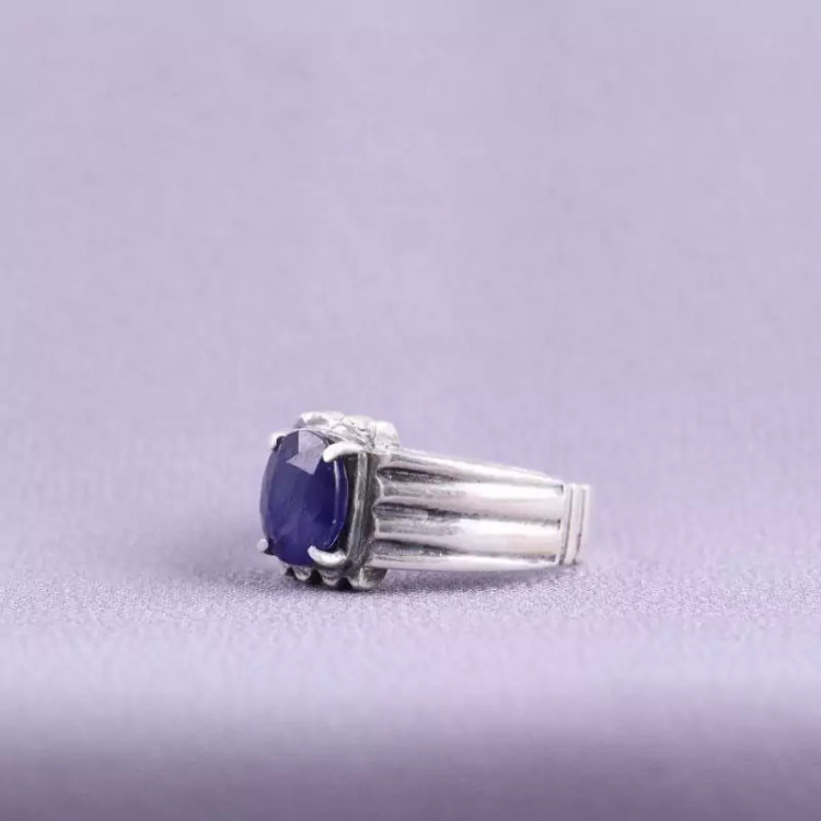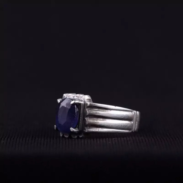 نگین انگشتر یاقوت کبود طبیعی اصل و رکاب آن نقره ۹۲۵ عیار می باشد.