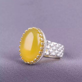 نگین این انگشتر زیبا عقیق زرد طبیعی اصل و مزین به حرز شرف الشمس می باشد.