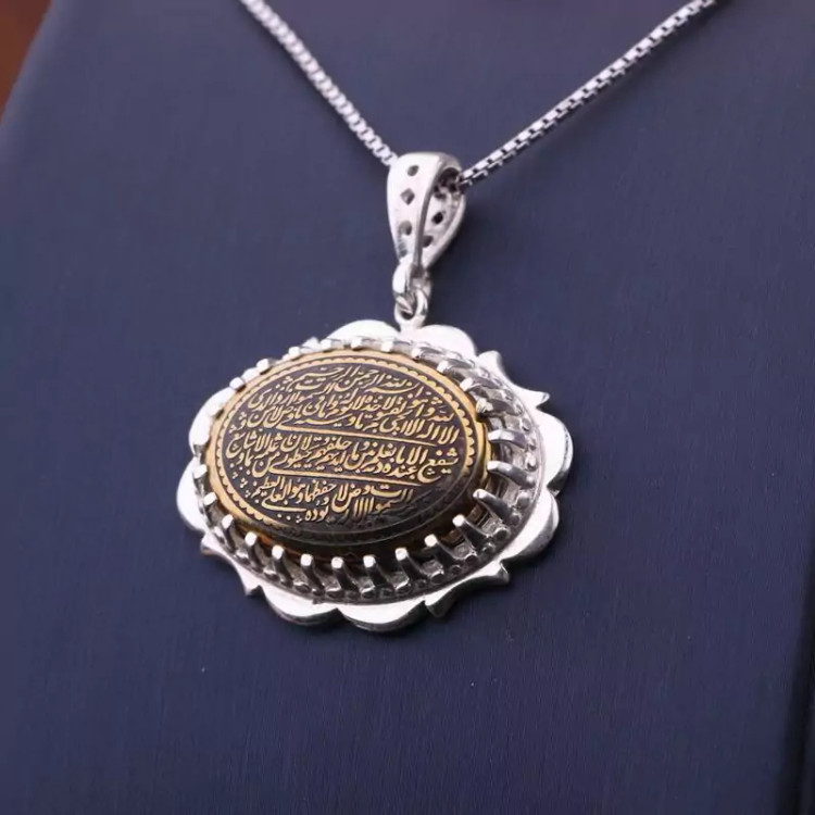 گردنبند حدید معدنی نقش آیت الکرسی روکش برنجی زنانه اصل ( گردنبند زنانه )