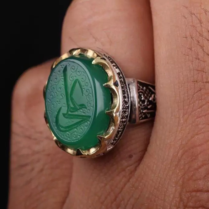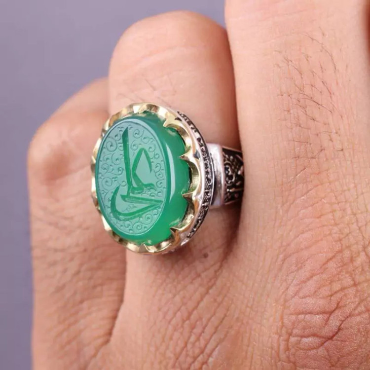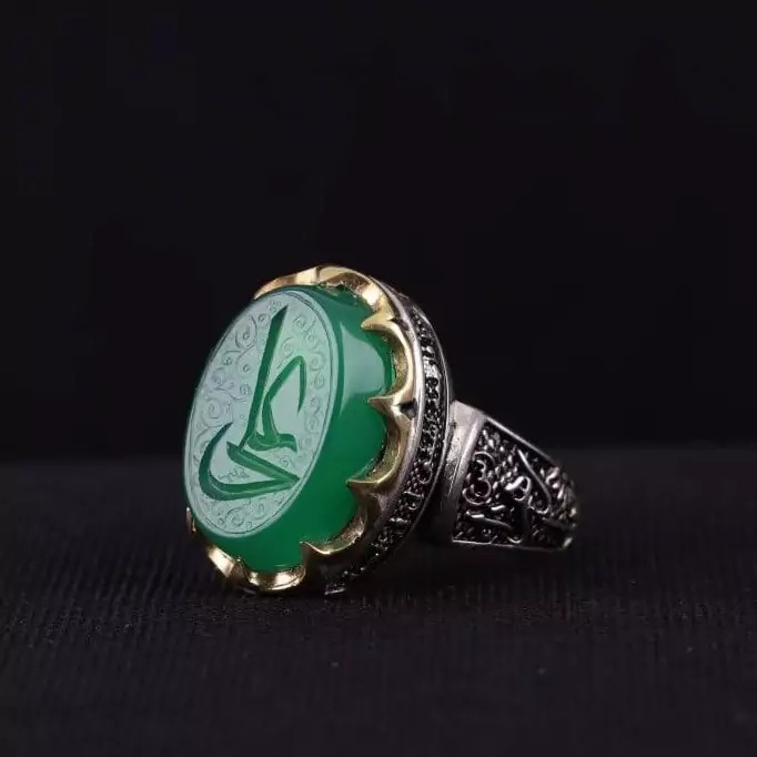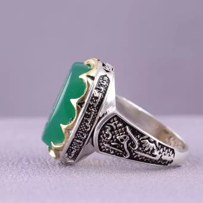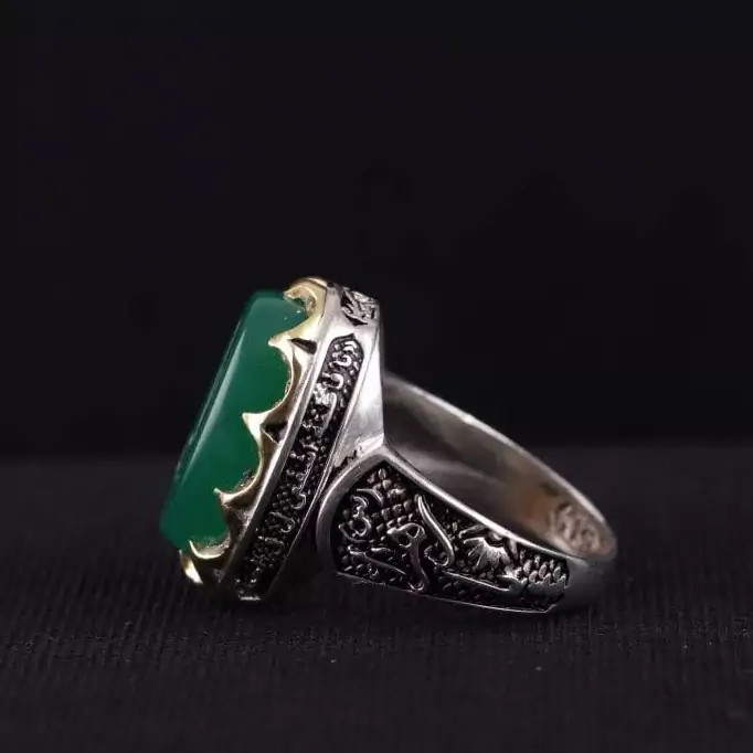 انگشتر مردانه عقیق سبز نقره امضا دار